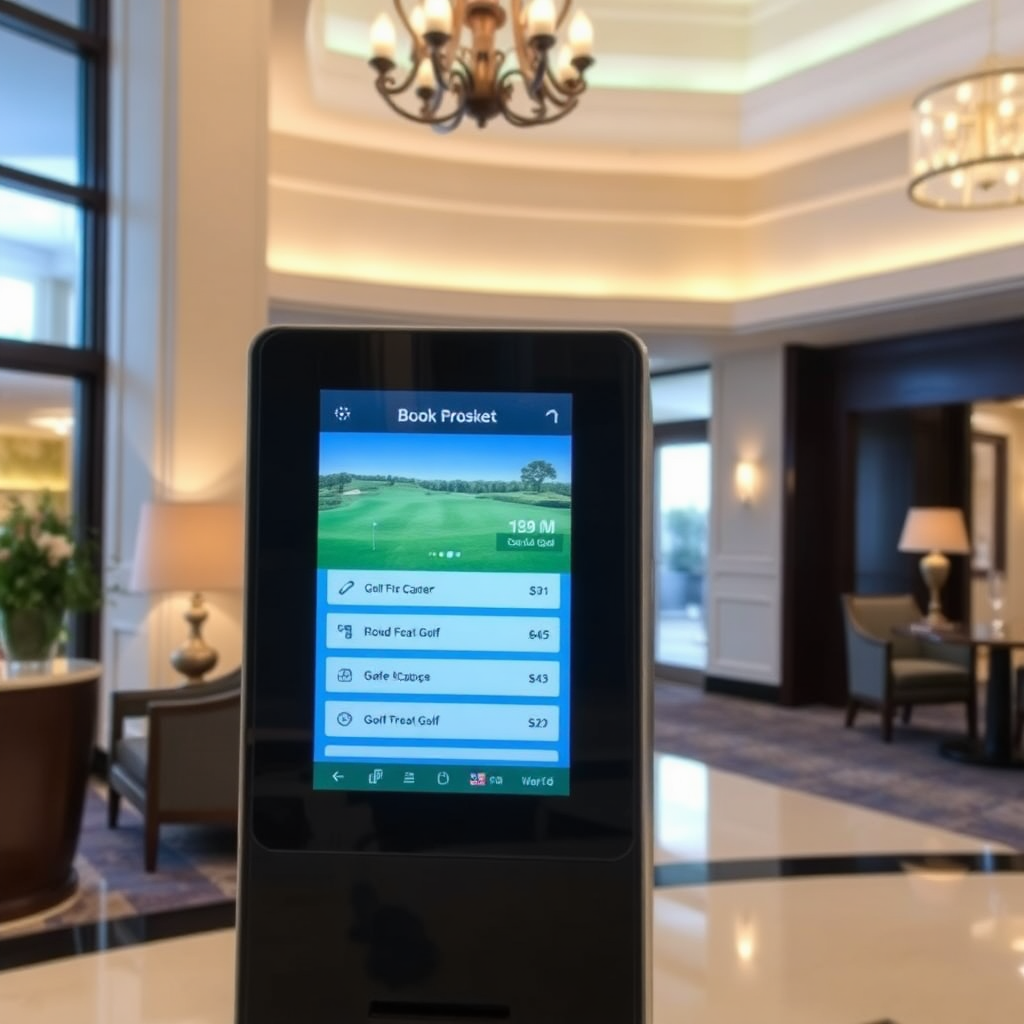 Verbinden Sie Ihre Hotelgäste direkt mit dem Golfplatz. Über interaktive Panels in der Lobby können Abschlagszeiten gebucht und Restaurantreservierungen vorgenommen werden, was den Komfort und die Buchungsrate Ihrer Zusatzleistungen steigert.